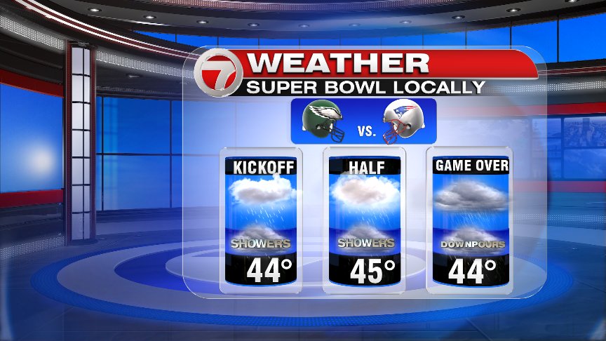 Let’s Gooooooo!!!! A must anticipated Super Bowl Sunday is upon us as the Pats look to complete the blitz for 6 later today. While it’s freezy, freezy in Minneapolis with highs barely above 0 later today, back here in New England, we’re talking about a rain maker later today. Any patchy light snow and flurries this morning will fade out and scattered rain showers develop this afternoon. Those showers become more widespread late in the day and locally heavy rain rolls in this evening. That means going to and from Super Bowl parties features plenty of wet weather. Hey, at least we don’t have to shovel!