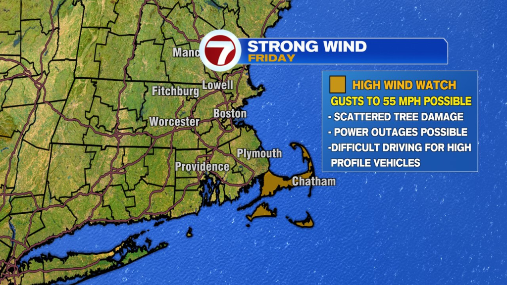 While it’ll be dry today and tomorrow, it won’t be on Friday. Temps spike into the mid 50s to near 60 Friday, however, we’ll track a soaking rain and strong, gusty southerly winds. Many of us pick up 0.50-1.00″ of rain. Additionally, we’ll see gusts 40-55mph Friday morning, through early afternoon. A high wind watch is up for the Cape and Islands for the highest potential gusts.