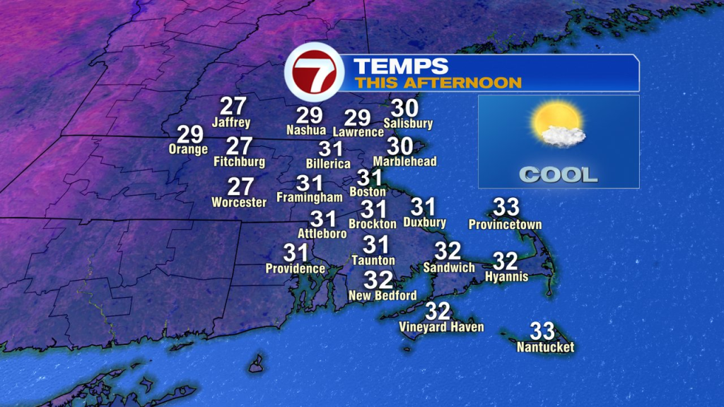 Highs today max out around 30 with gusts running around 20mph this afternoon. Tonight will be cold, single digits and teens.
