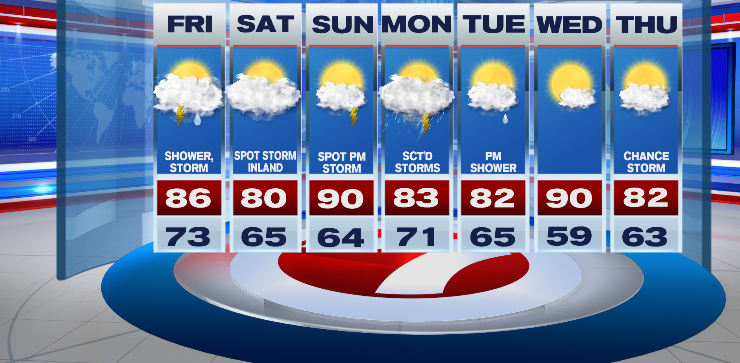 In terms of the weekend, It looks pretty good. Both days offer summery weather with Sunday being the brighter/hotter of the two days. Sunday also offers a slightly higher chance of an afternoon storm versus Saturday…30% versus 10%.