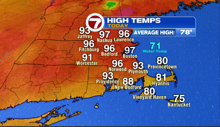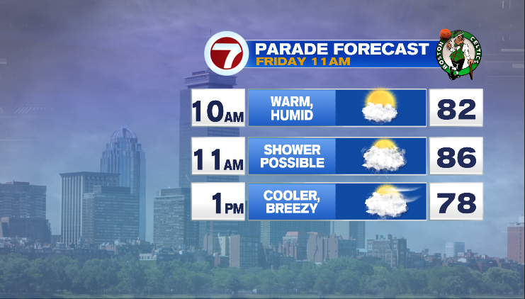 A cool front will drop in from the Gulf of Maine but not until midday early afternoon. Plan on a very warm late morning but relief should arrive by afternoon, especially along the coast. In terms of the Celtics parade, it will be quite warm & humid as the parade is starting but cooling nicely as the parade is wrapping up. While it will be very warm at first, we do not anticipate dangerous heat like we’ve seen the past two days…