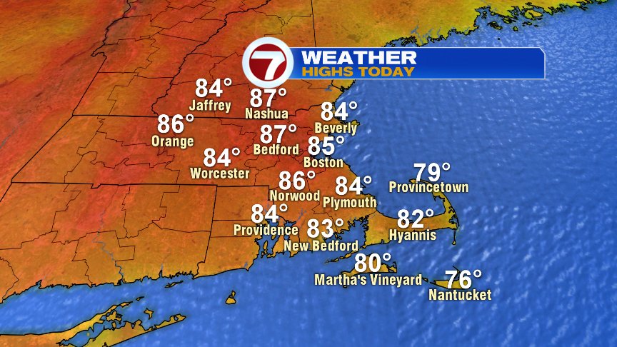 Humid enough for you? At 5am, the temperature in Norwood was 77 degrees with a dew point of 73, nearly matching what it was in Miami, Florida. While we won’t see any palm trees swaying in the breeze, we will continue to experience that Florida-like feel to the air this week as high humidity continues to stream in from the south.