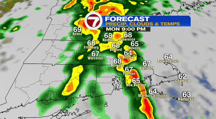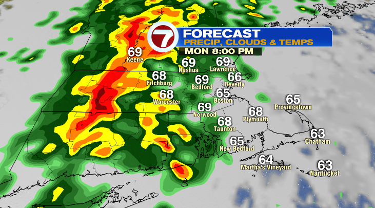 From the west to the east, a line of downpours and thunderstorms will move across our area, with the worst of it from 7-11 p.m.