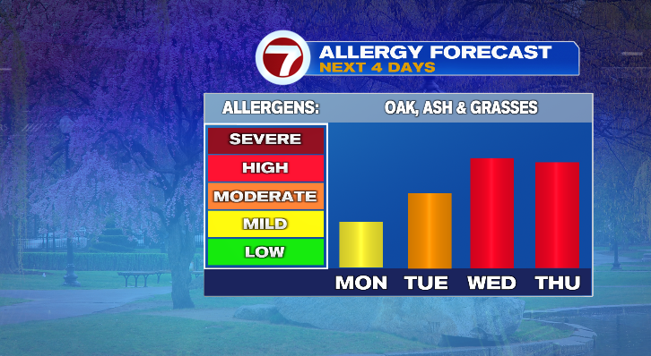 The one benefit of rain is that it lowers pollen levels, which will also go right back up later this week.