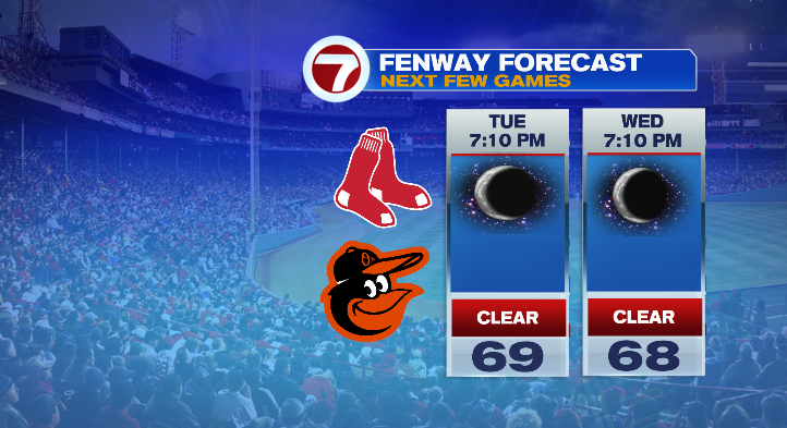 This weekend: mostly sunny skies and highs inland in the low 80s. At the coast, beaches, and the Cape and the islands: mid to upper 70s. Monday will be similar. Skies partly sunny, highs in the low 80s with coastal areas in the mid to upper 70s. Tuesday will be dry and partly sunny again with highs in the upper 70s and low 80s.