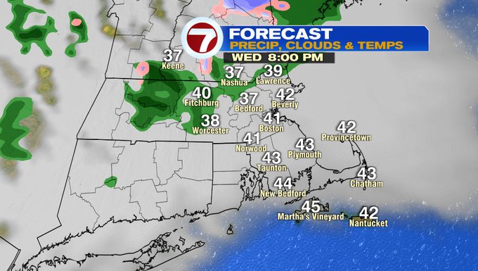 Tonight, there’s a chance for a shower after 8PM for north central MA and southern NH, but this line will likely fall apart before moving into the 495-corridor. Aside from that shower threat, we remain dry through the end of the week.