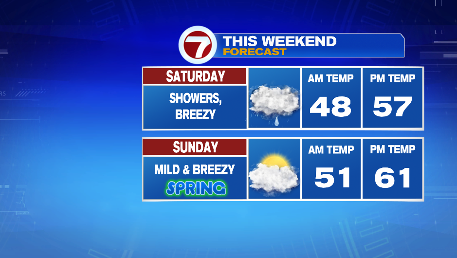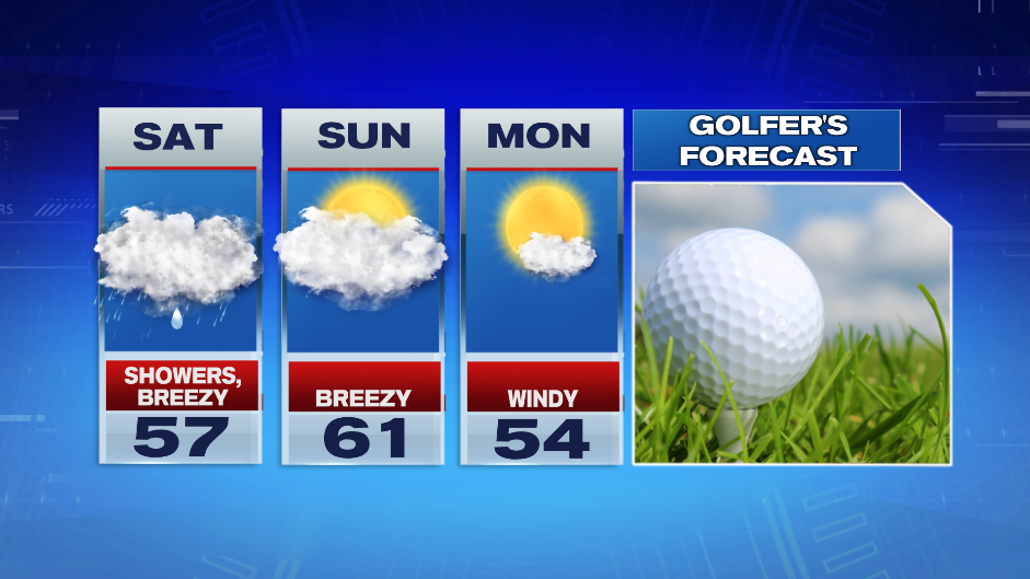 Sunday has lots of clouds around and it will be breezy at times. Temperatures start in the upper 40s and low 50s and we get into the low 60s in the afternoon.