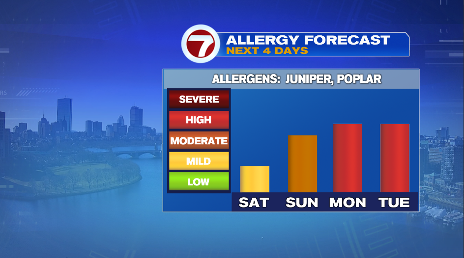 Pollen count is up! The allergy forecast goes up to “high” Monday and Tuesday of this upcoming week.