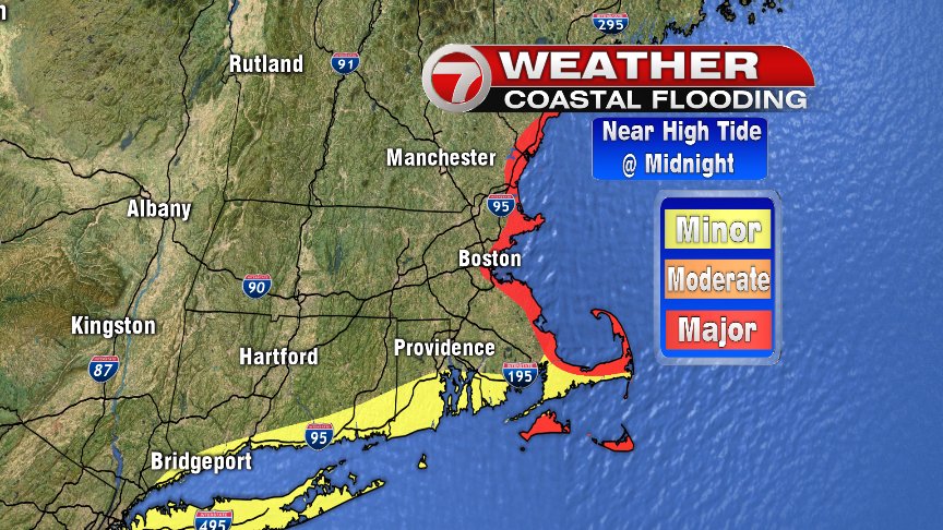 Okay – so once again, still a ways to go with this one. Watching out for high tide tonight around midnight and then again tomorrow around mid-day. There could be some lingering rain/snow showers for the coast tomorrow early, but for Saturday the storm is more about the continued wind. Today in New England will start early tomorrow morning at 6am for continuing coverage of this wicked weather.