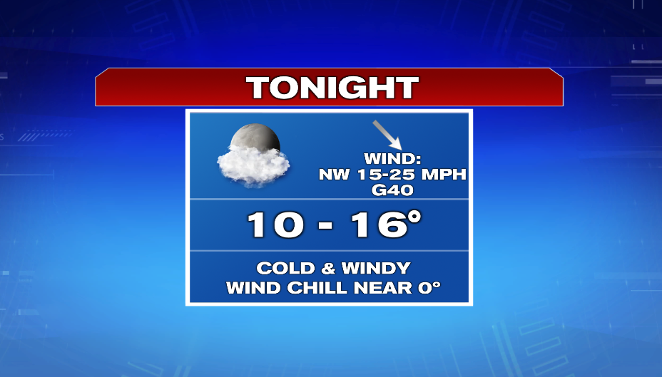 You will need all of the winter gear tomorrow! Wind chills will start between -5º to -10º in the morning, and it remains windy and cold in the afternoon with feels like temperatures in the teens. The one upside to the day will be the bright, blue skies.