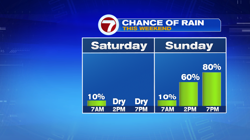 We’ll track showers that are in and out on Friday, but exit stage east for Saturday. Saturday looks to be the pick of the weekend with dry skies prevailing and temps well into the 60s. Showers return Sunday, with the highest chance in the afternoon. Temps fade back into the 50s too.