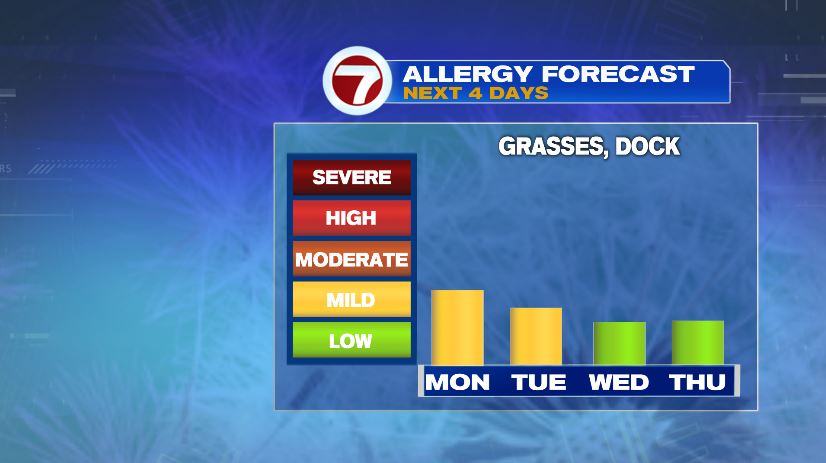 The work week is rather unsettled. That said, there is no day that appears to be a total washout. A spot shower is possible Tuesday with more rain on Wednesday. The rain threat Wednesday will highest across our southern spots (south of 44). So for most Wednesday will be just a few isolated showers. Thursday daylight hours are dry with rain moving in late and continuing into Friday. The plus side to the unsettledness, cloud cover, and rain chances is pollen levels stay pretty low.