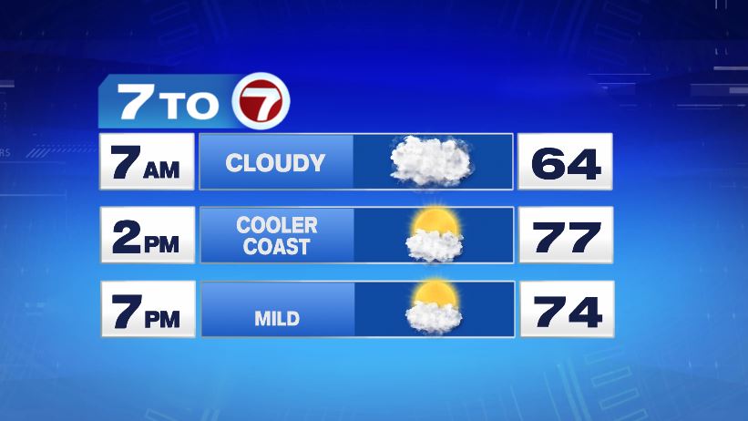 Rain exits in time for the morning commute and we’ll be dry for the daylight hours of Monday. In fact, with sunshine, we’ll be up near 80 degrees for our inland spots, but cooler on the coast.